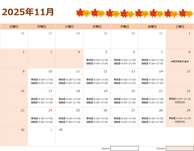 業務状況によっては、開室日時が変更になる場合もございます。